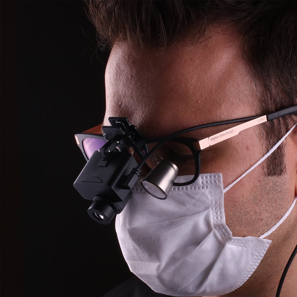 OXO 4K camera mounted on loupe. POV dental recording