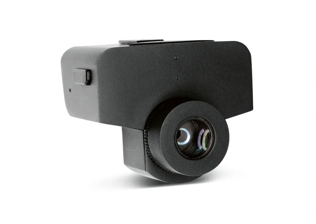 Designed for POV mounting, optics are tuned for typical clinical working distances (roughly 20–70 cm) and give a wide field appropriate for loupe-mounted capture.